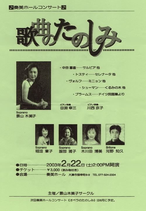 | 02 月 22 日(土) | 歌曲の楽しみ![]() |